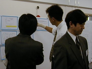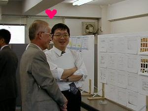 ポスター(その2の1) 妙に神妙な面持ちの梯さん。 ボランティアご苦労様でした。 手首の骨折をものともせず 熱弁を振るう奥出さんも見えま〜す。 女性ギャラリーの前で 思わず熱の入っている森さん。 うれしさが口元にあらわれています。 . 妙にうれしそうなふたり。セビリアでの思い出 でも語っているのかな? 自称気楽な旅だった人と、 残念な事件に巻き込まれた人。 Return to Top Page.