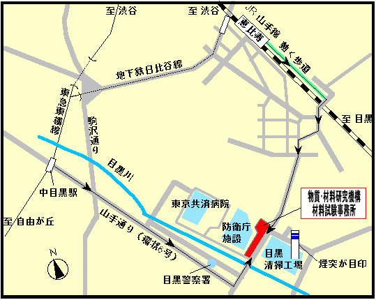 独立行政法人 物質・材料研究機構 材料試験事務所 51号庁舎 3階302号会議室 住所:〒153 東京都目黒区中目黒2−2−54 TEL:03-3719-2271 現地交通機関、所用時間等 営団地下鉄日比谷線, 東急東横線「中目黒駅」下車 徒歩15分 JR山手線「恵比寿駅」下車 徒歩15分 (恵比寿駅からお越しの際は、狭い道路が多くわかりにくいため、地図検索サイト等で道順をご確認の上ご来場ください。)
